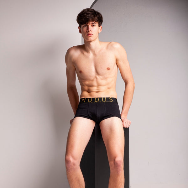 ALL BLACK NUDUS Men's Bamboo Trunks - Fly Opening - Pack of 4 - Gift Box